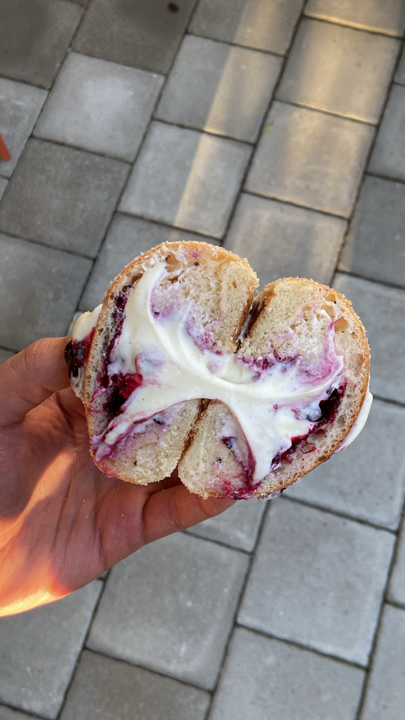 - Bollo de crema de grosella negra x4: delicado bollo de cardamomo, crema de vainilla y compota de grosella negra.